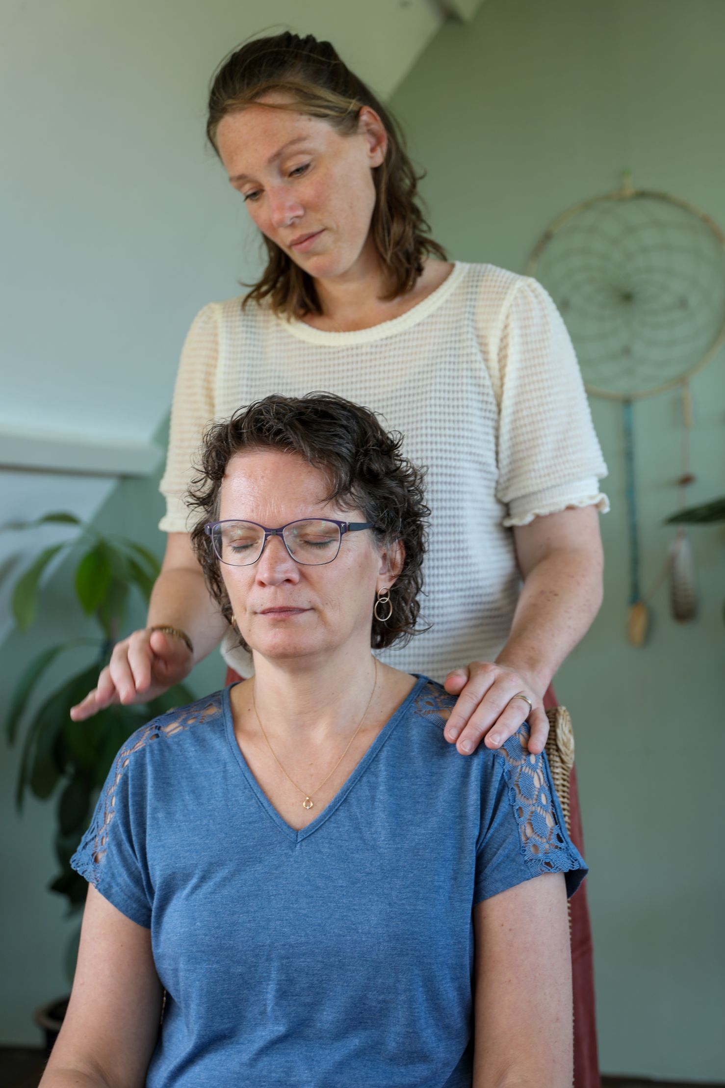 Ik ondersteun jou door je gronding te waarborgen. Dit gebeurt in afstemming met jou via fysieke aanraking (bijvoorbeeld bij je schouders of je voeten) en/of door je verbaal aan te moedigen en je te laten weten dat ik bij je ben.