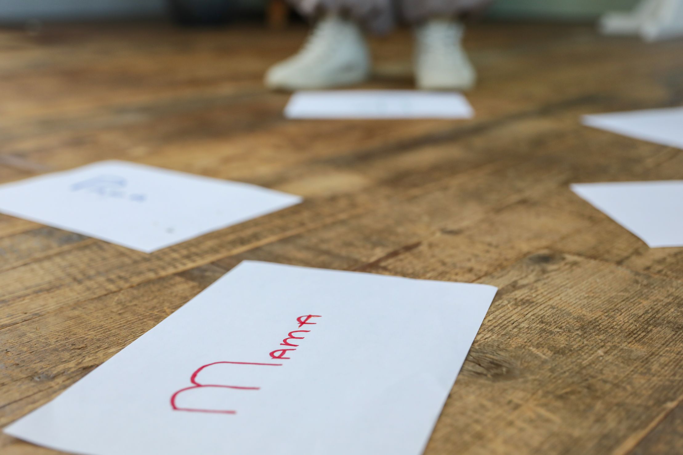 Ik werk 1 op 1 en met behulp van grondankers of playmobiel poppetjes. Grondankers zijn bijvoorbeeld A4-tjes waar je namen of thema’s op hebt geschreven, die je vervolgens op gevoel op de grond neerlegt. Bij een tafelopstelling maken we gebruiken van poppetjes, waarbij elk poppetje een persoon of thema representeert.